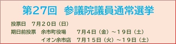 第27回参議院議員通常選挙の投・開票が7月20日(日)に行われます。