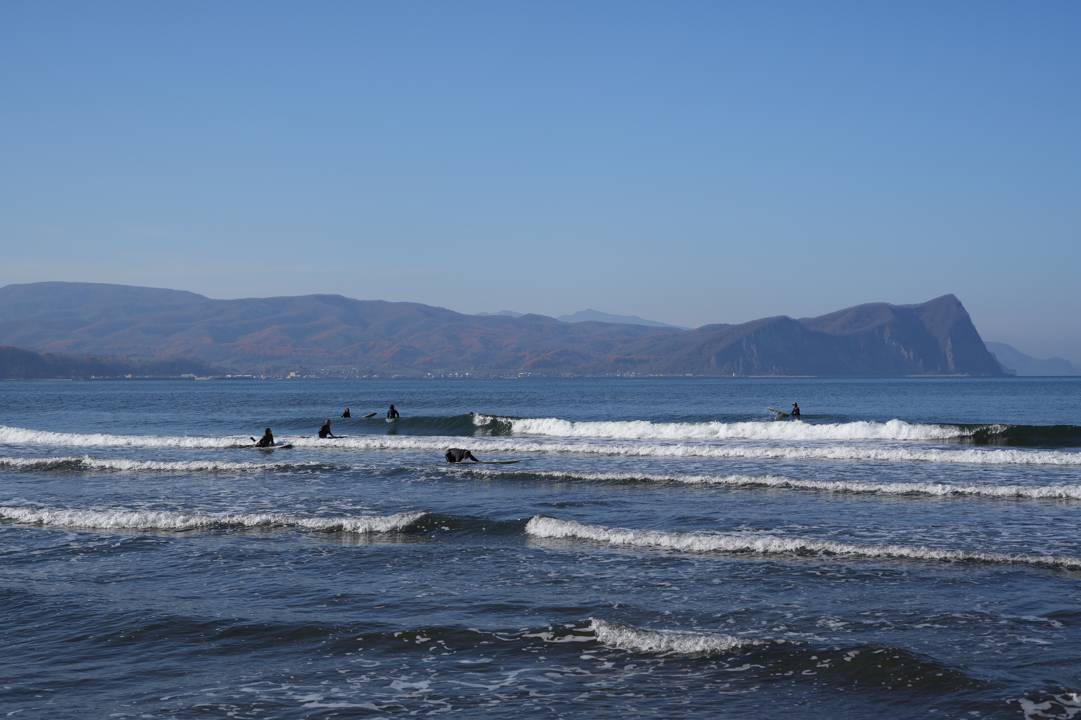 シリパ岬をバックにサーフィン 撮影日:11月16日